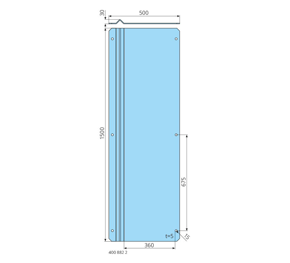 1500x500x30mm, gauche/droite, acier inoxydable