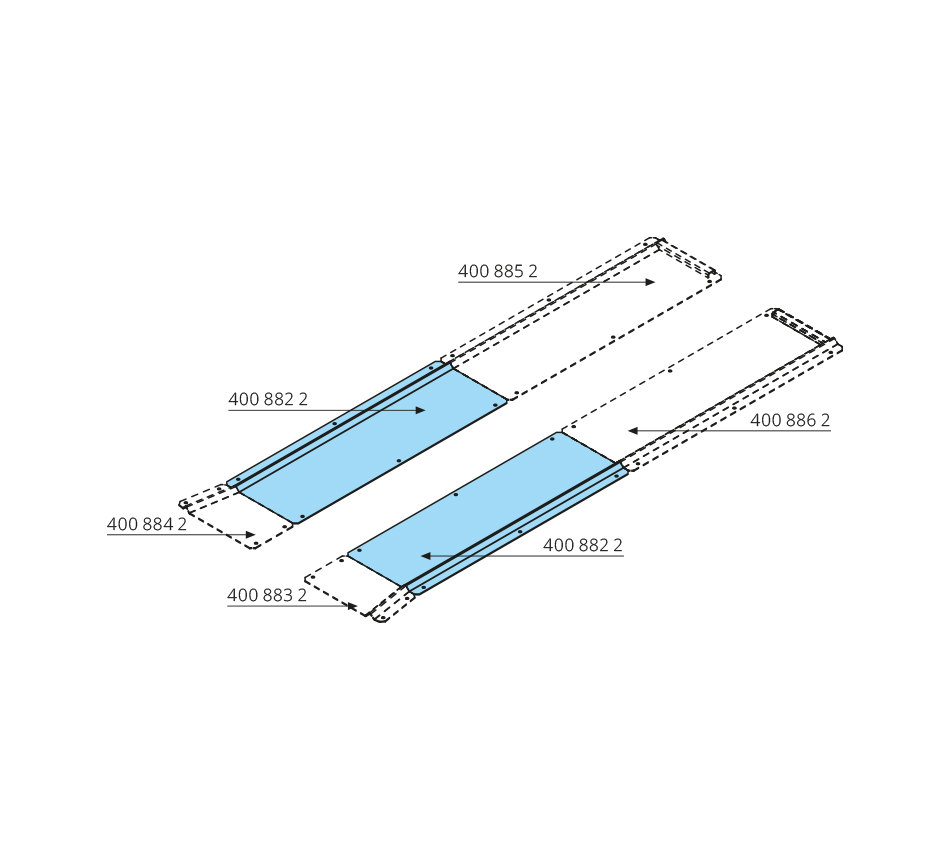 Rail de guidage 1500x500x30mm, gauche/droite, acier inoxydable