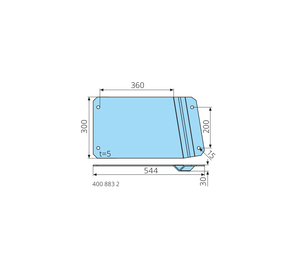 Rail de guidage 300x544x30mm, avant droite/arrière gauche, inox