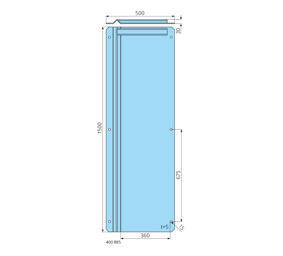 Rail de guidage avec butée1500x500x30mm, gauche, brut
