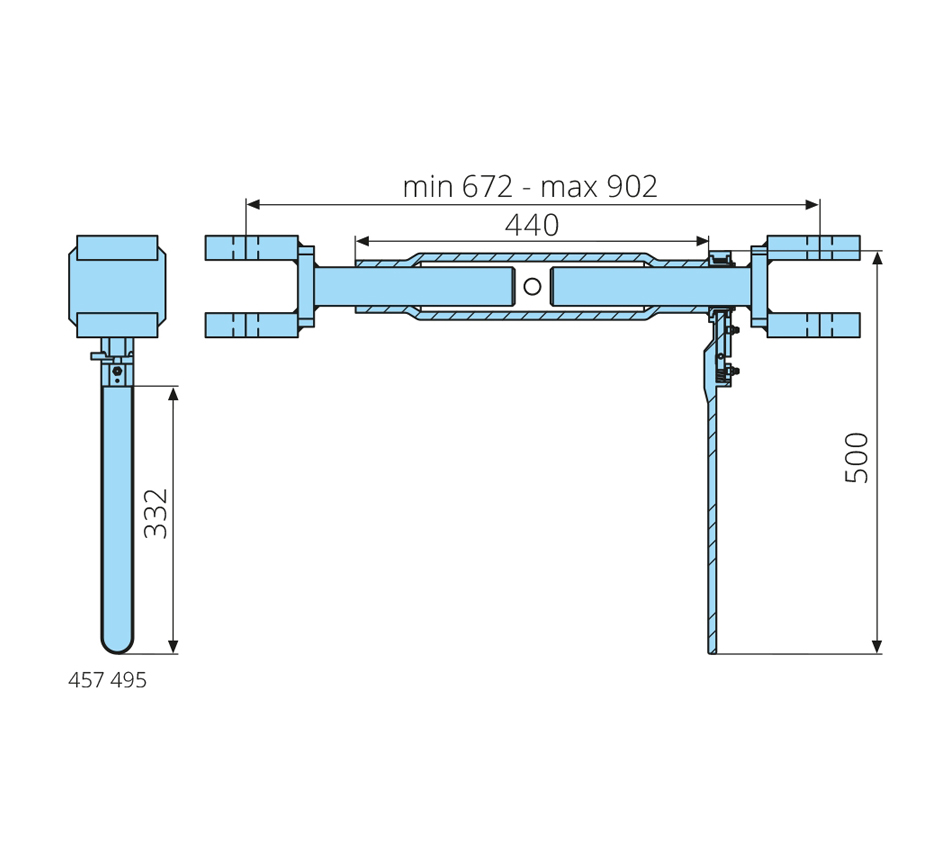 TR48, turnbuckle L=440mm, handle L=332mm, with clevises with trapezoidal thread, galvanized