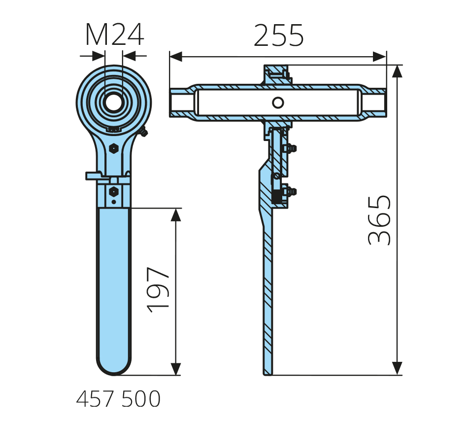 M24x255x365mm, handle L=197mm, for compactors, galvanized