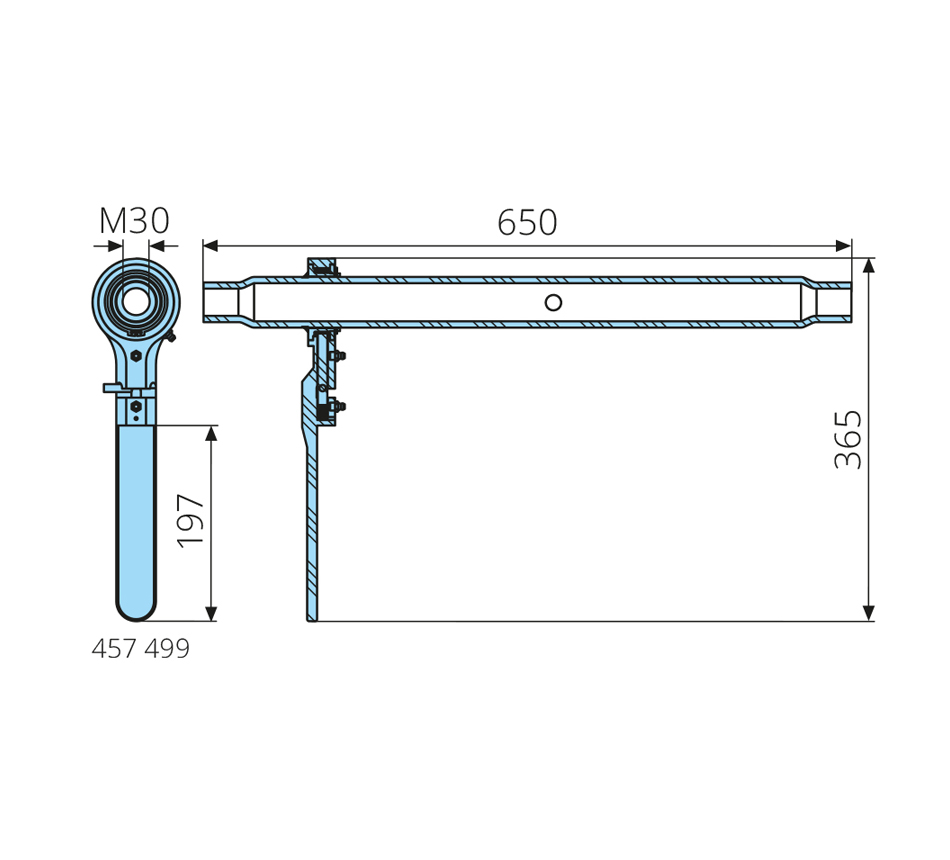 M30, turnbuckle L=650mm, handle L=197mm, for stationary compactors, galvanized