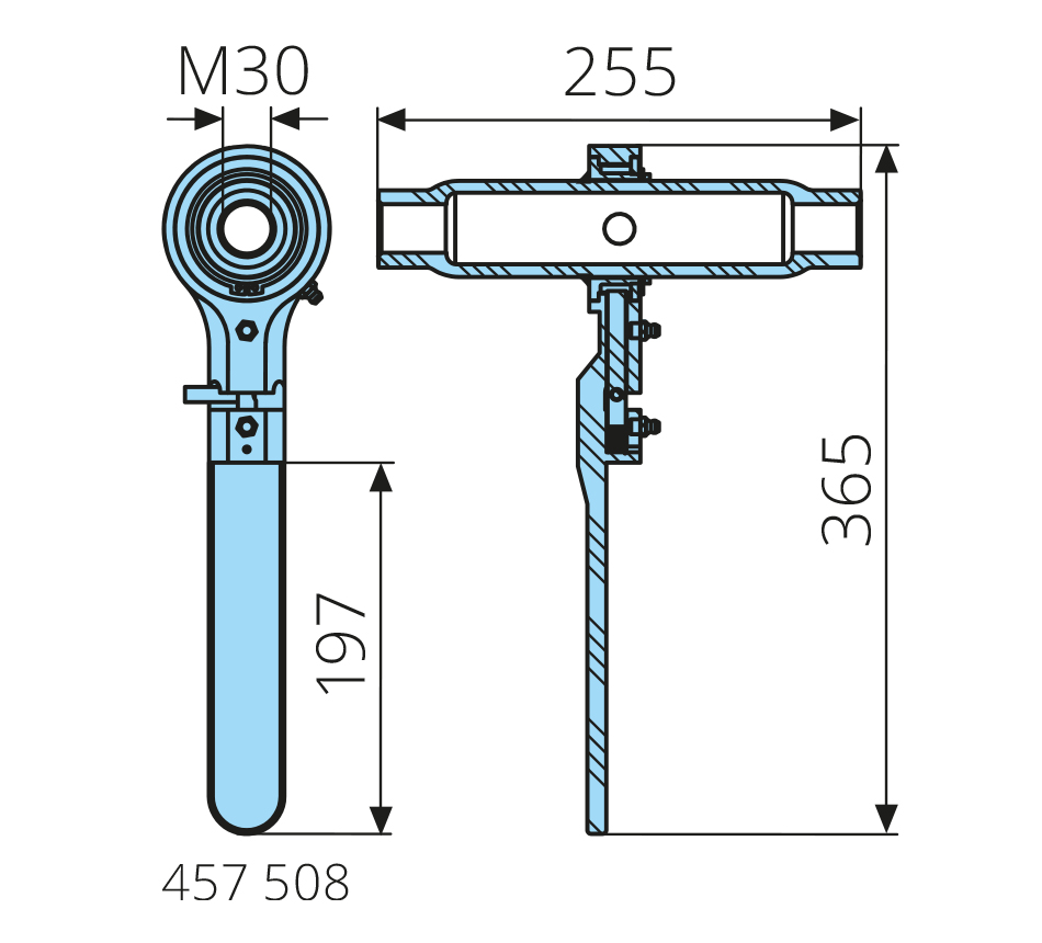M30x255x365mm, poignée L=197mm, pour compacteurs, zingué