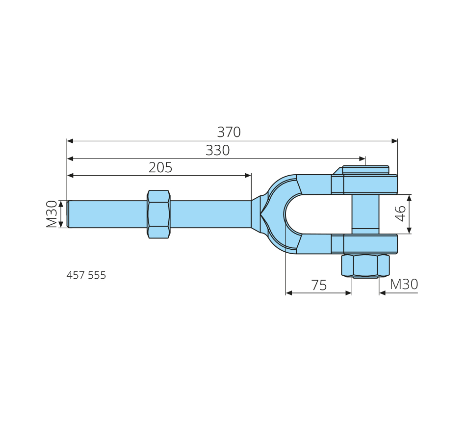 M30x370mm, filet à gauche, zingué, forgée, avec broche de sécurité, goujon & écrous
