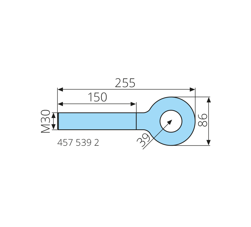 Œillet filetéM30x255mm, filet à droite, galvanisé, d=39mm