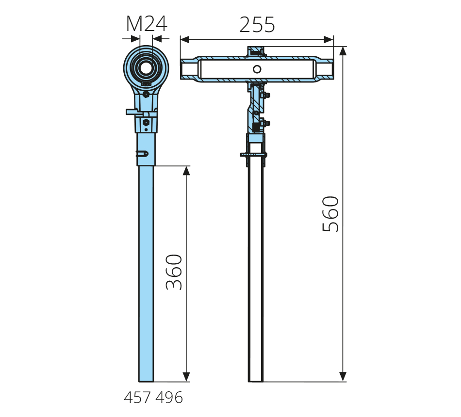 M24x255x560mm, poignée L=360mm, pour conteneurs interchangeables, type HÜFFERMANN, zingué