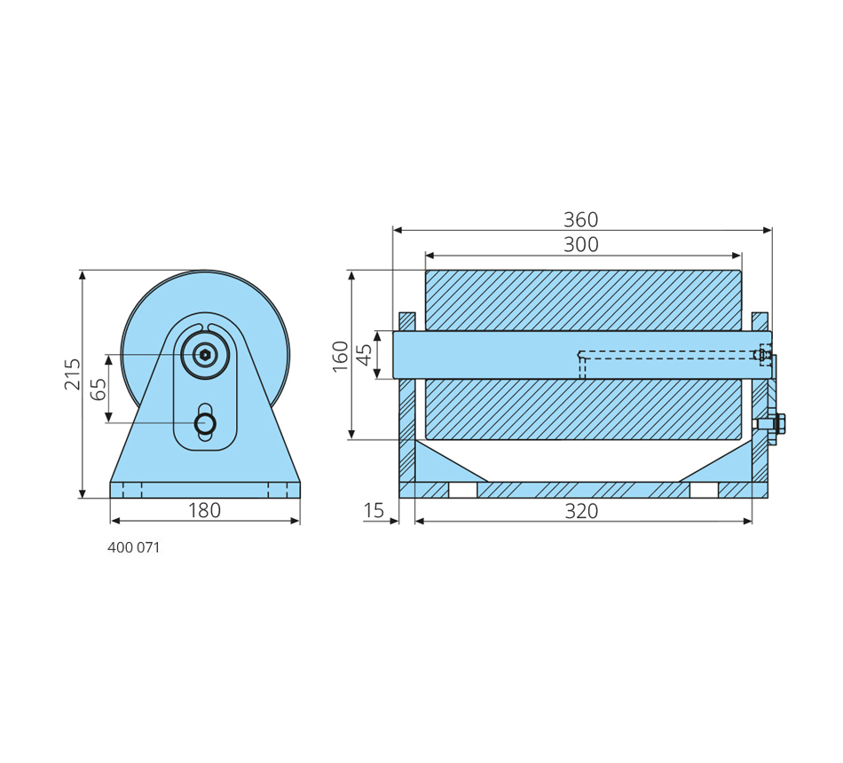 Polyamide roller complete for bolted mounting45-160-300mm, H=215mm, with lubrication