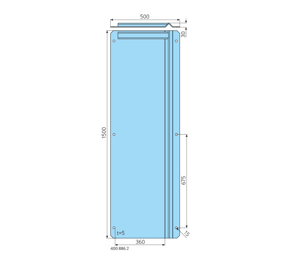 1500x500x30mm, droite, acier inoxydable