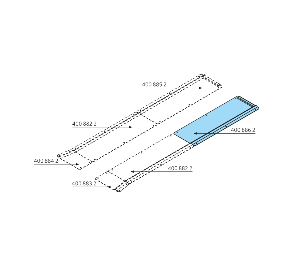 Rail de guidage avec butée d'arrêt1500x500x30mm, droite, acier inoxydable