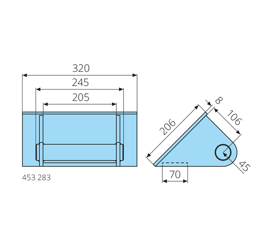 320x206x8mm, bouchon S355J2
