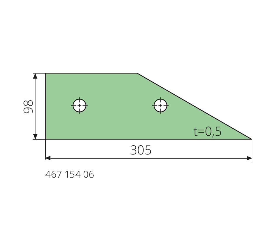 0,5x305x98mm, S355J2, type PAAL, for counter blade 467 154