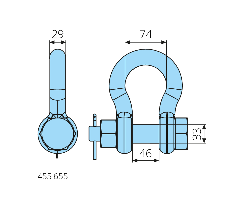 NG 1 1/8, WLL 9,5t, high-strength, with pin, nut & cotter, minimum 5-way safety, bracket hot-dip galvanized, painted pin
