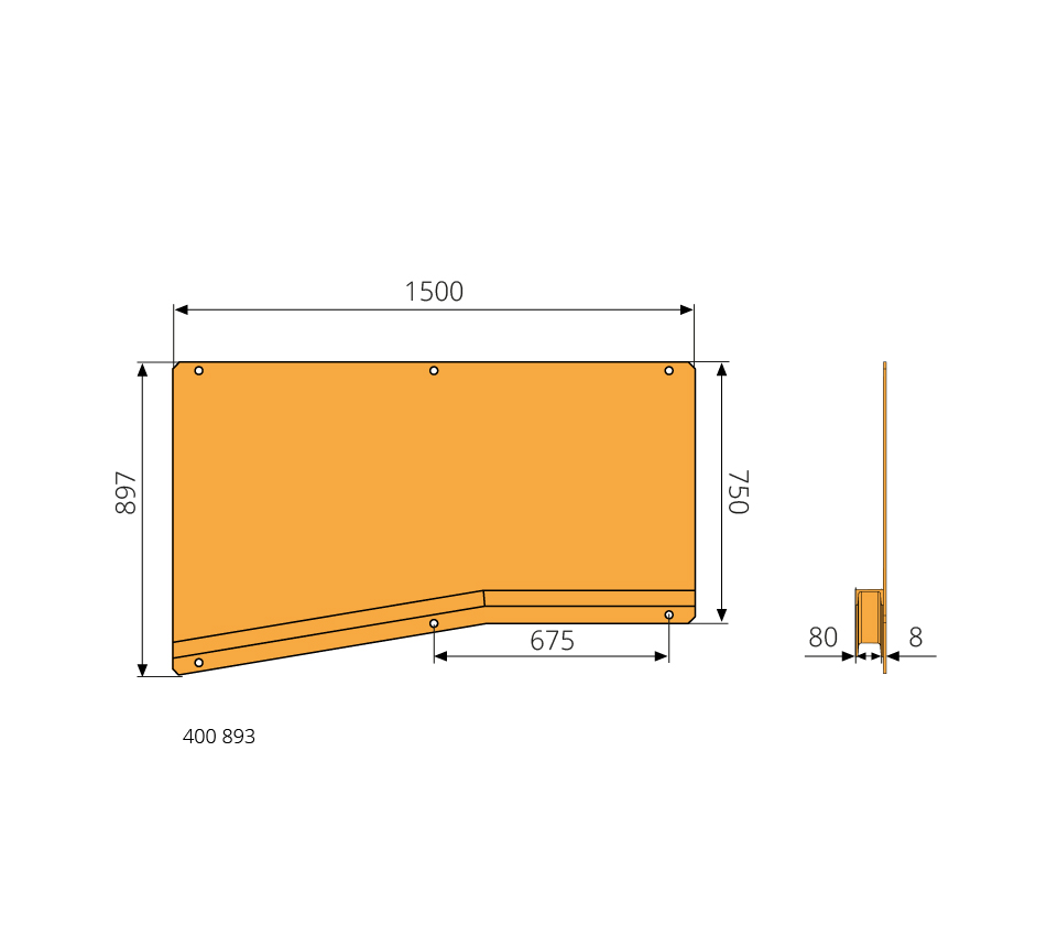 Shunting aid1500x750/897x88mm, front right, with rust protection