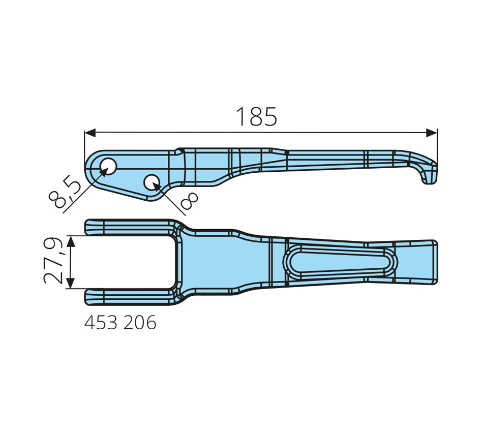 L=185mm, spare part for 453 200 /-204, forged