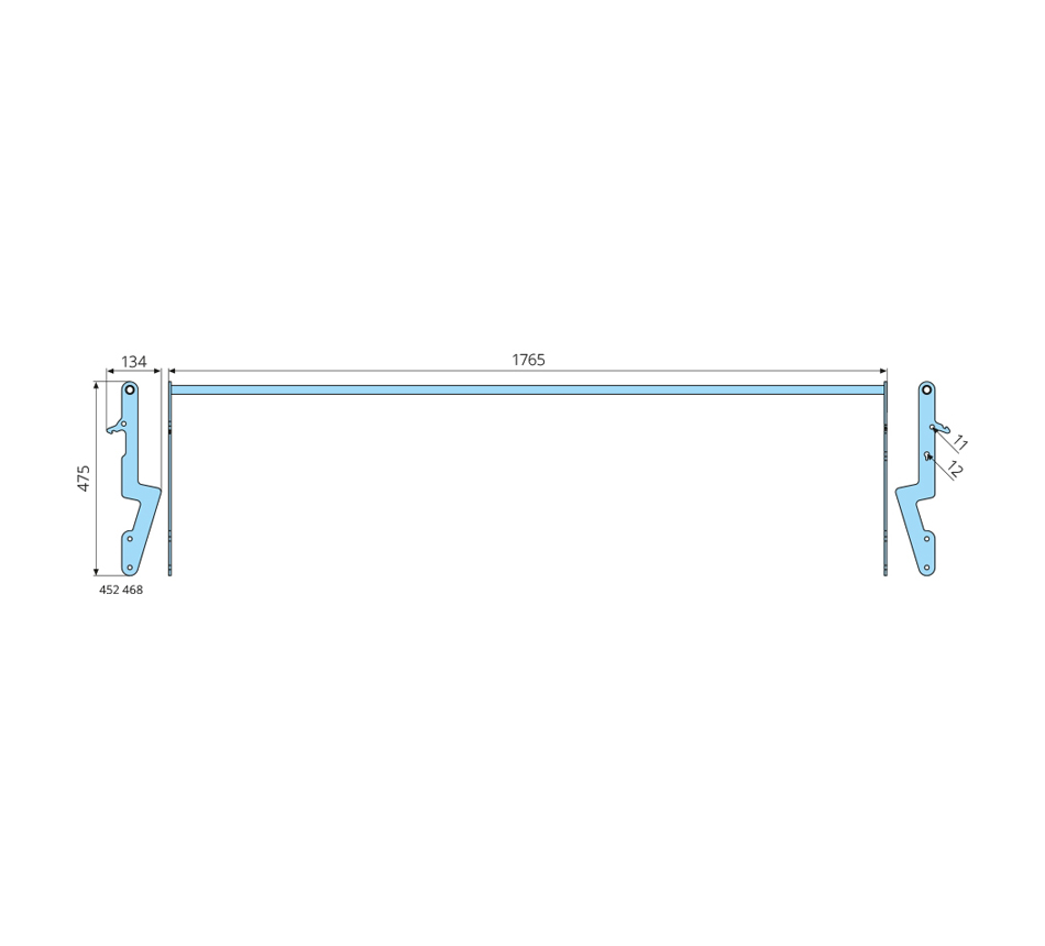1765x475mm, galvanized, round tube, with key hole for lock pin 452 472