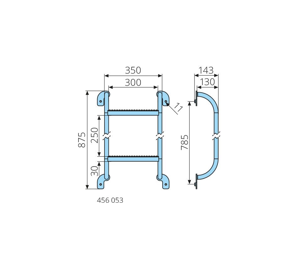 3 rungs, 875mm, galvanized, for bolted mounting, steel, according to DGUV