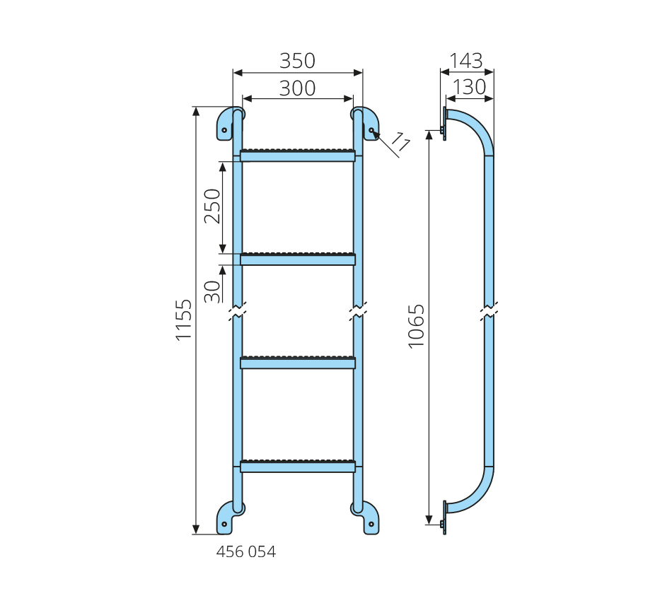 4 rungs, 1155mm, galvanized, for bolted mounting, steel, according to DGUV