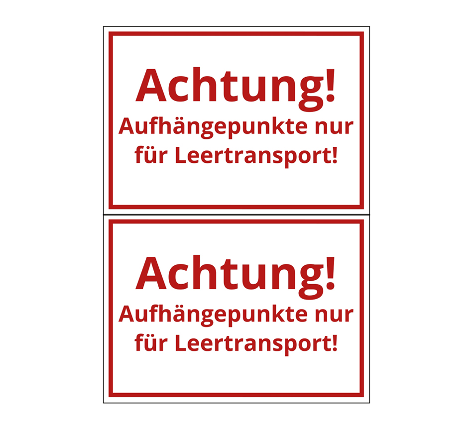 PVC sticker "Aufhängepunkte nur für Leertransport"210x150mm, 2 stickers/sheet