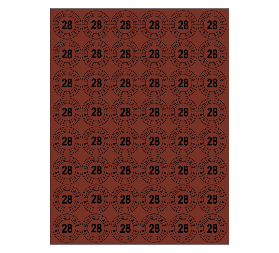PVC inspection sticker "2028"D=30mm, 48 stickers/sheet