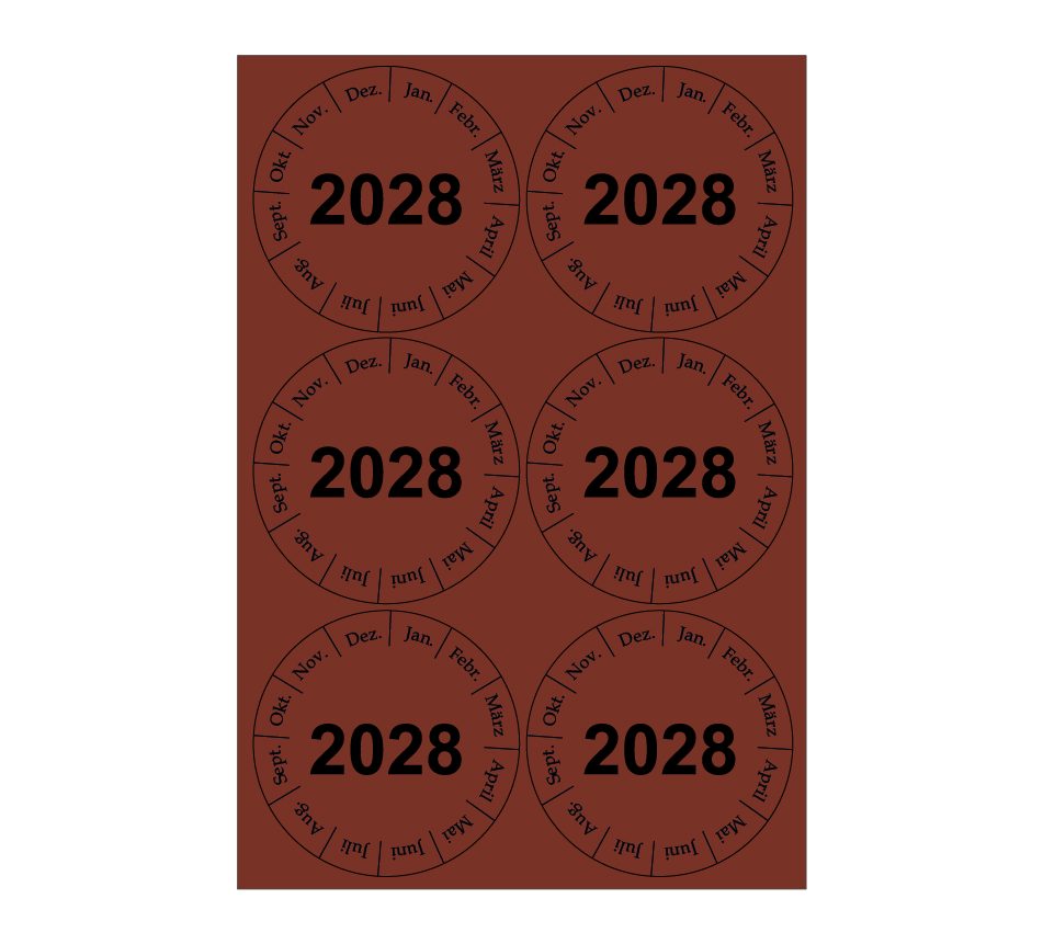PVC inspection sticker "2028"D=75mm, 6 stickers/sheet