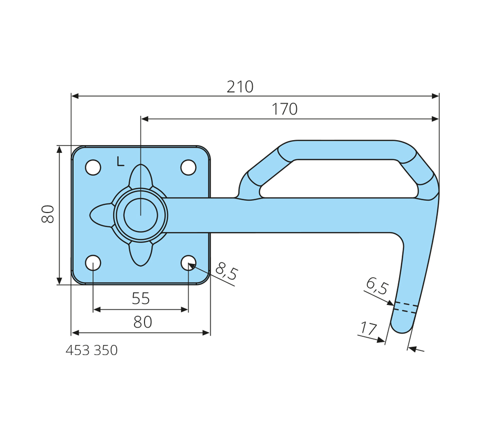 D=17mm, left, size 2, hook L=170mm, plate 80x80mm, galvanized