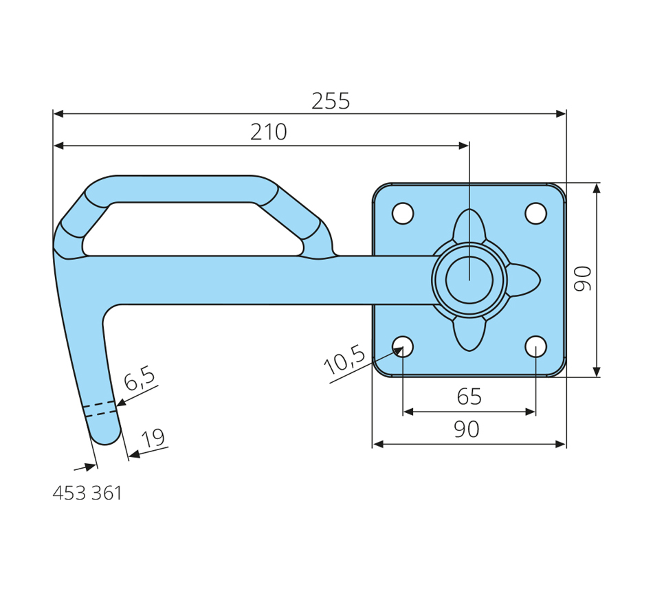 D=19mm, right, size 3, hook L=210mm, plate 90x90mm, galvanized