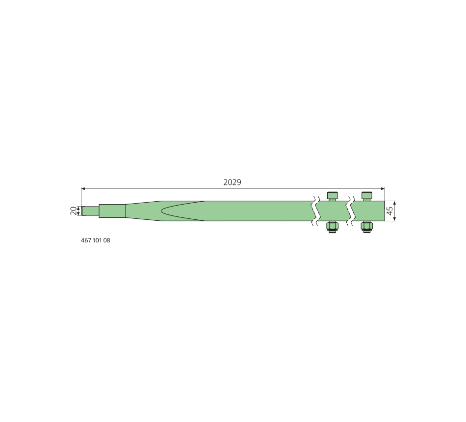 45x45x2029mm, S355J2, avec visserie, type PAAL, pour supports de rouleau réferences 467 110 /-100