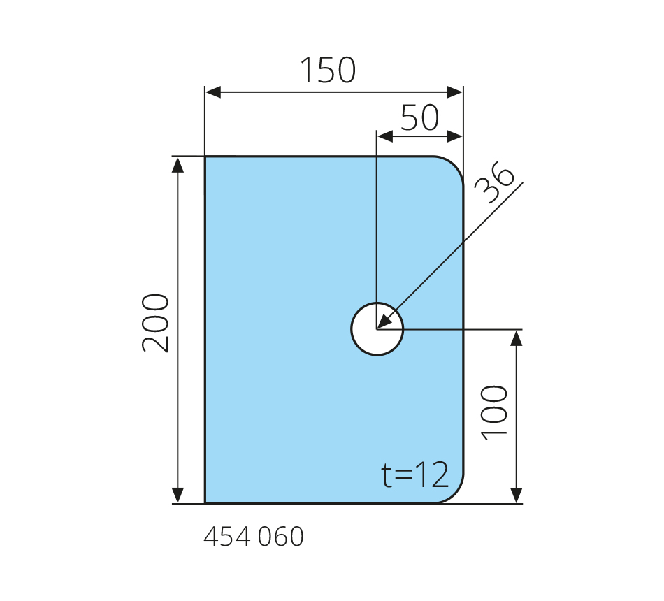 Plaque à souder12x150x200mm, d=36mm, pour Axe de préhension City D=35mm, S355J2