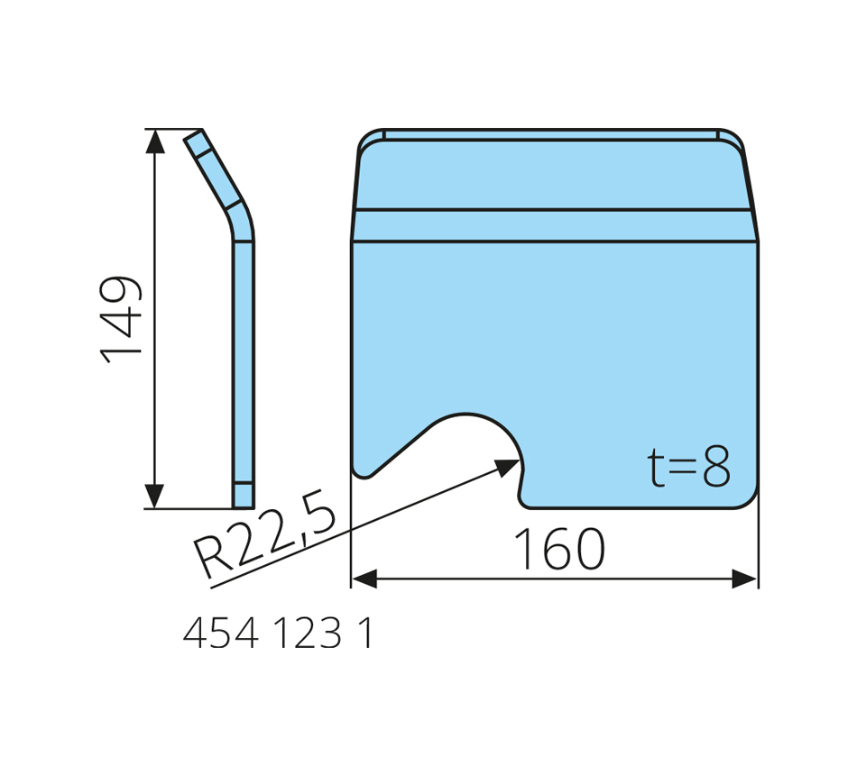 Tôle de renfort axe de préhension 149x160x8mm, gauche