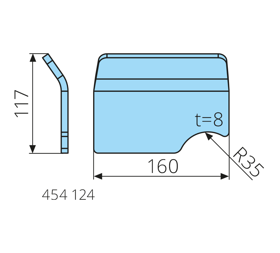 Tôles de renfort axe de préhension117x160x8mm, droite