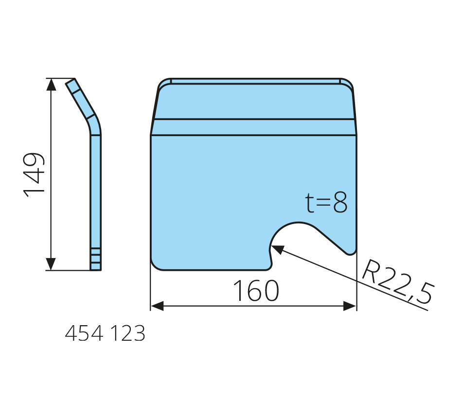 Tôles de renfort axe de préhension149x160x8mm, droite