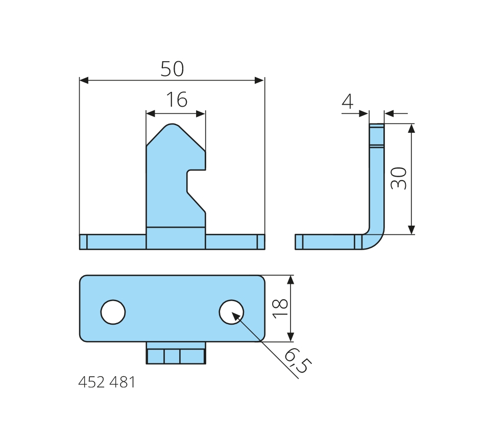 Tôle de verrouillage16x30x4mm, pour serrure triangulaire 452 469 /-470, galvanisé