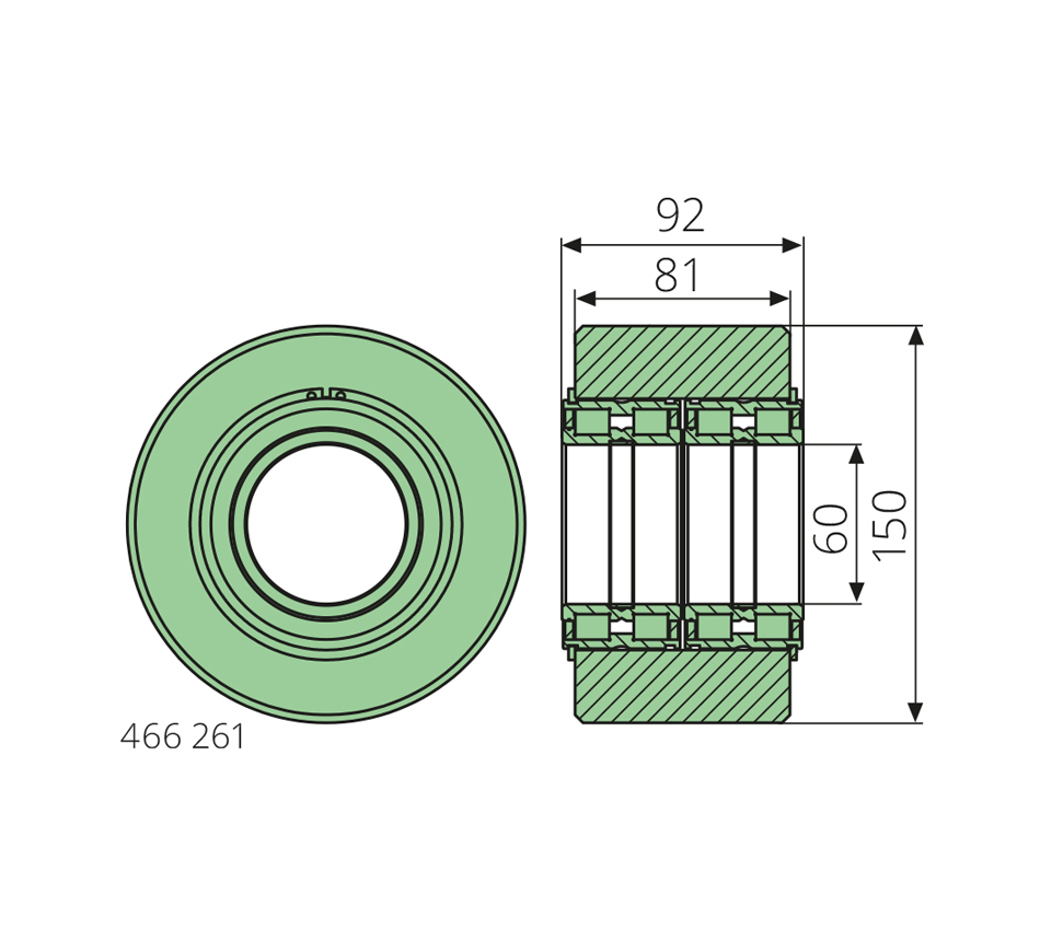 60-150-81mm, 2 bearings, type BOLLEGRAAF, for HBC 80,100,110