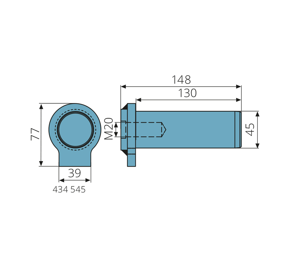 45x148mm, upper cylinder bolt, induction hardened, type LIEBHERR