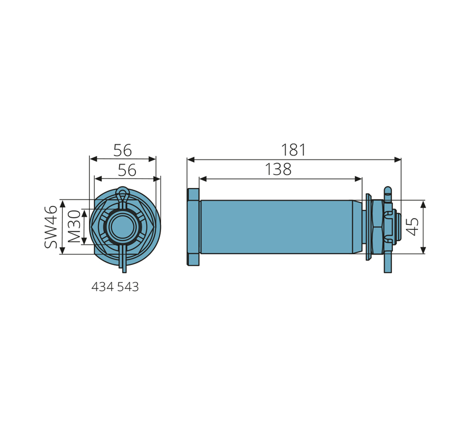 45x181mm, with washer, cotter pin & nut, induction hardened, type LIEBHERR, OEM no. 9830051