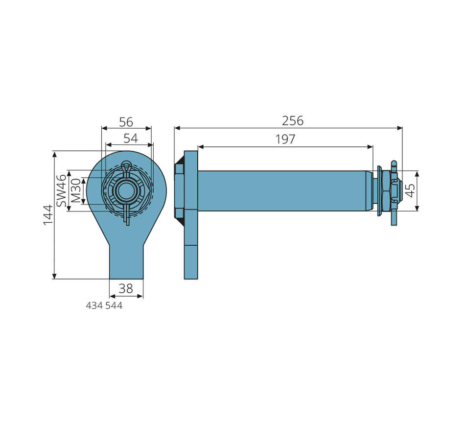 45x256mm, lower cylinder bolt, with washer, cotter pin & nut, induction hardened, type LIEBHERR, OEM no. 9340755