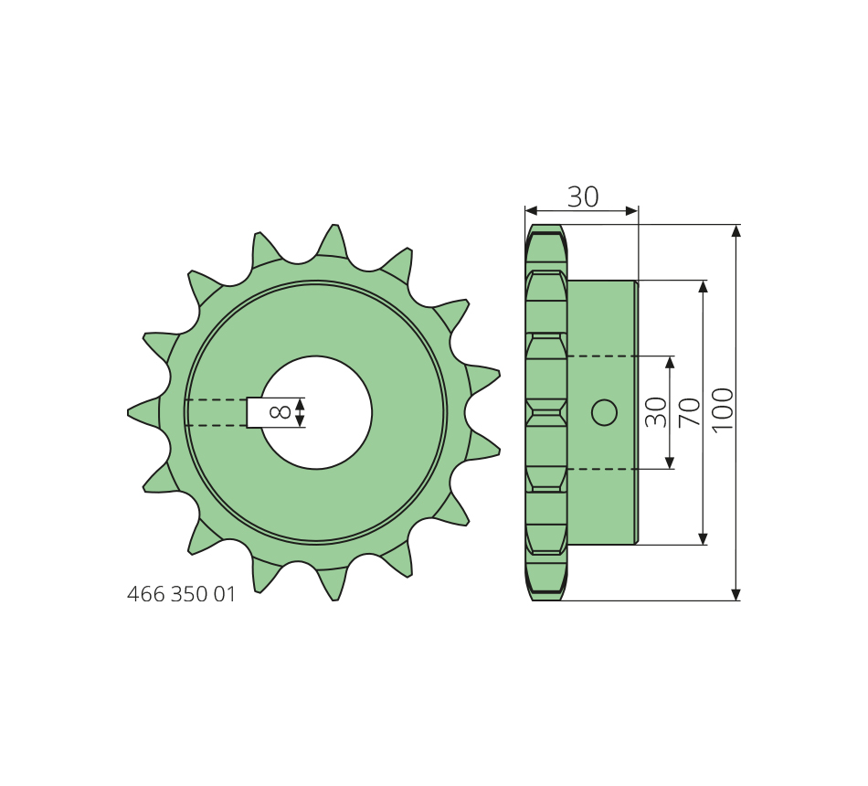 Pignon de chaîne30-100-30mm, 15 dents, alésage avec rainure, type BOLLEGRAAF