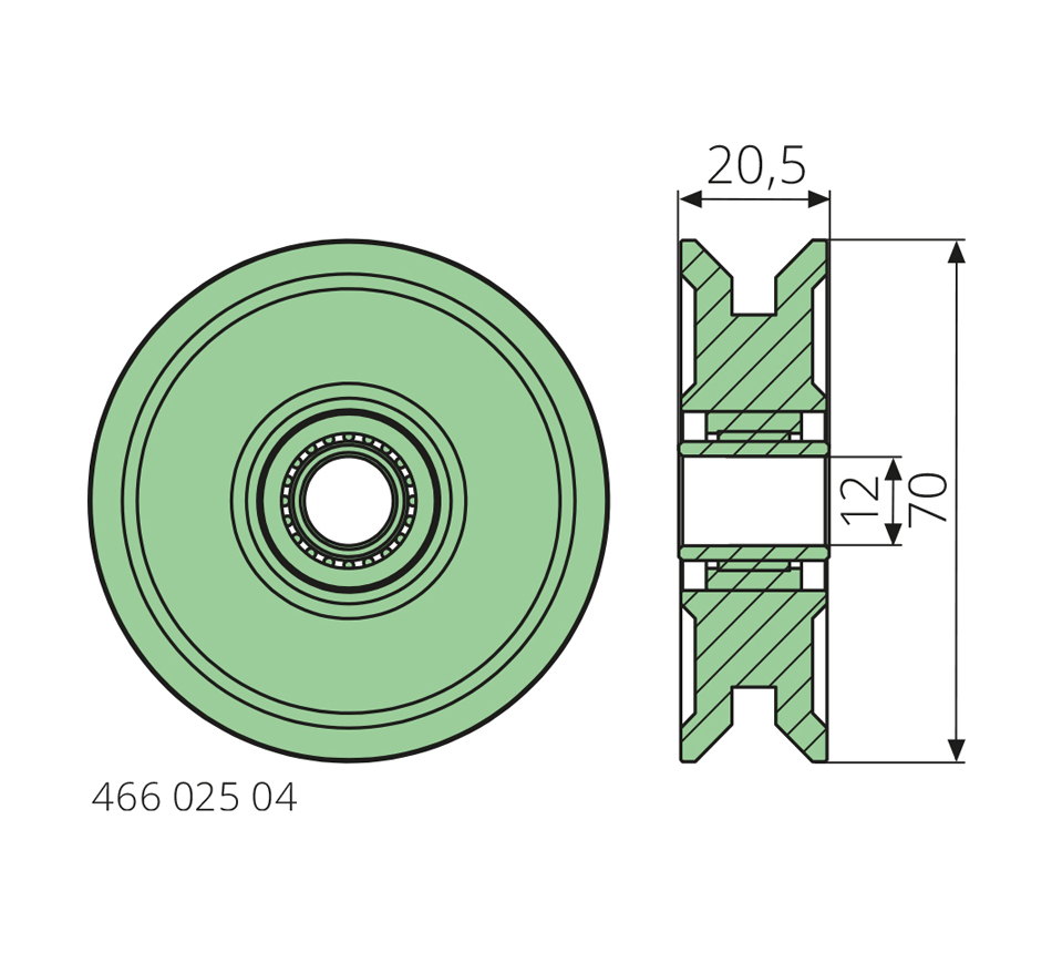 Poulie guide-fil12-70-20,5mm, 42CrMo4, acier trempé, avec roulement à aiguilles & douille, type PRESONA