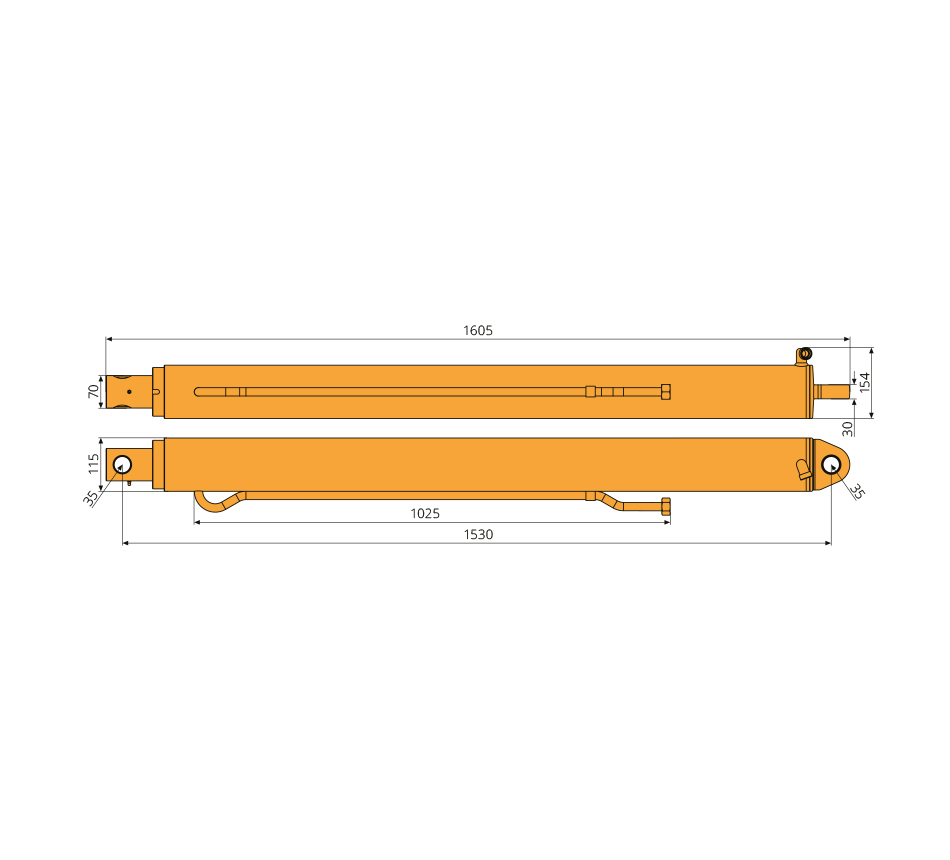 Vérin hydrauliqueCourse 1240mm, double effet, 300bar, SPB/SEL, apprêt, type HUSMANN