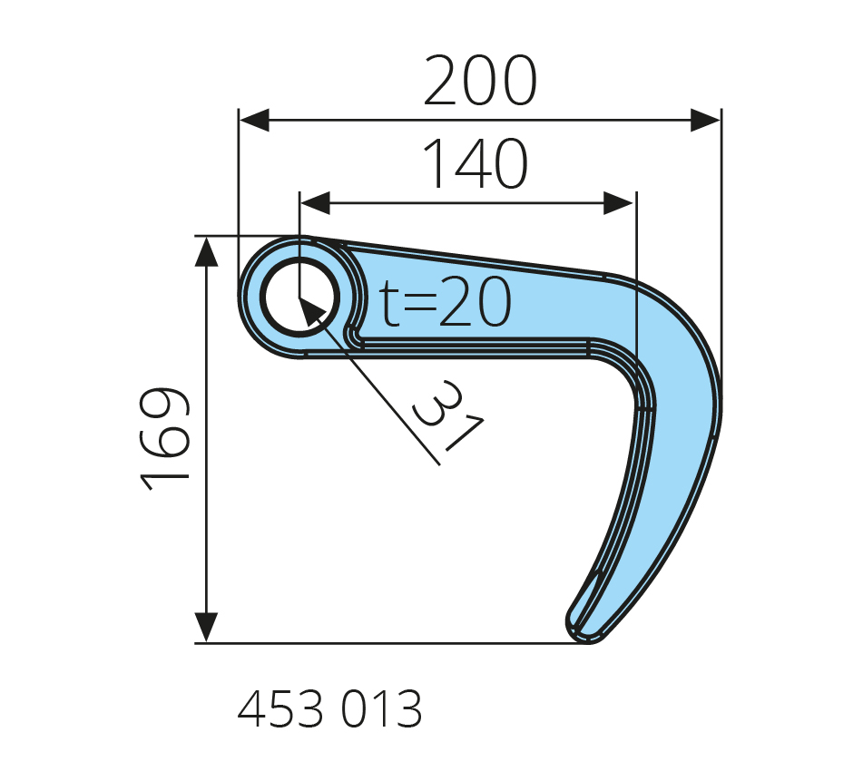 Crochet de verrouillage de ported=31mm, t=20mm, forgé, S355J2