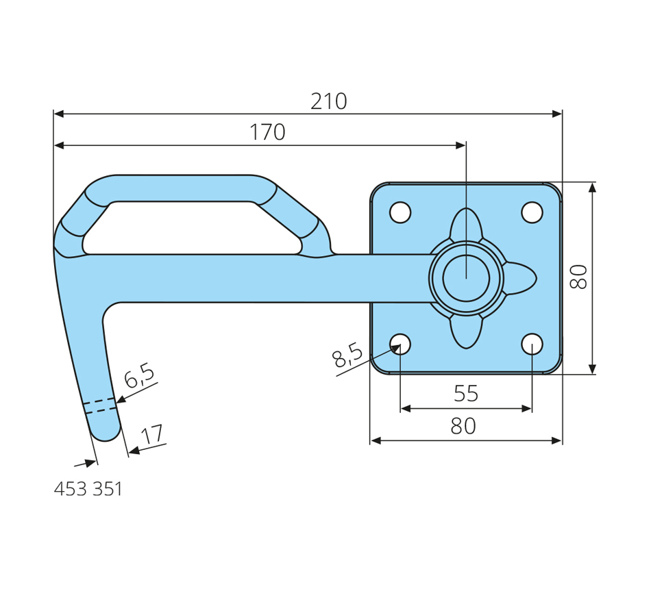 Verrouillage des voletsD=17mm, droite, taille 2, crochet L=170mm, plaque 80x80mm, galvanisé
