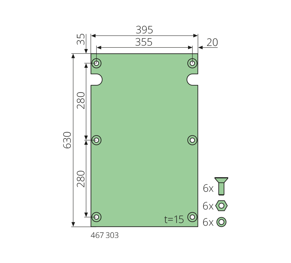 395x630x15mm, Hardox 450, with screws & nuts, type PAAL
