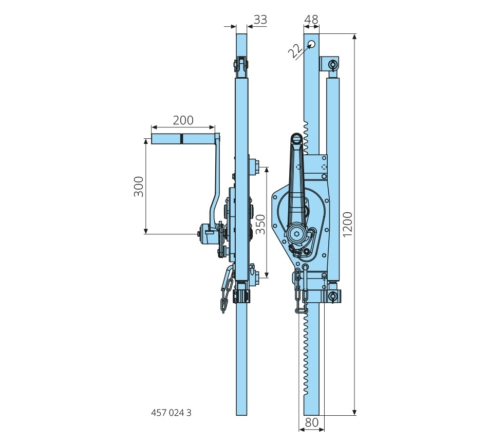 lifting force 3t, lifting capicity 5t, stroke 500mm, with gas spring 452 626 & safety pin