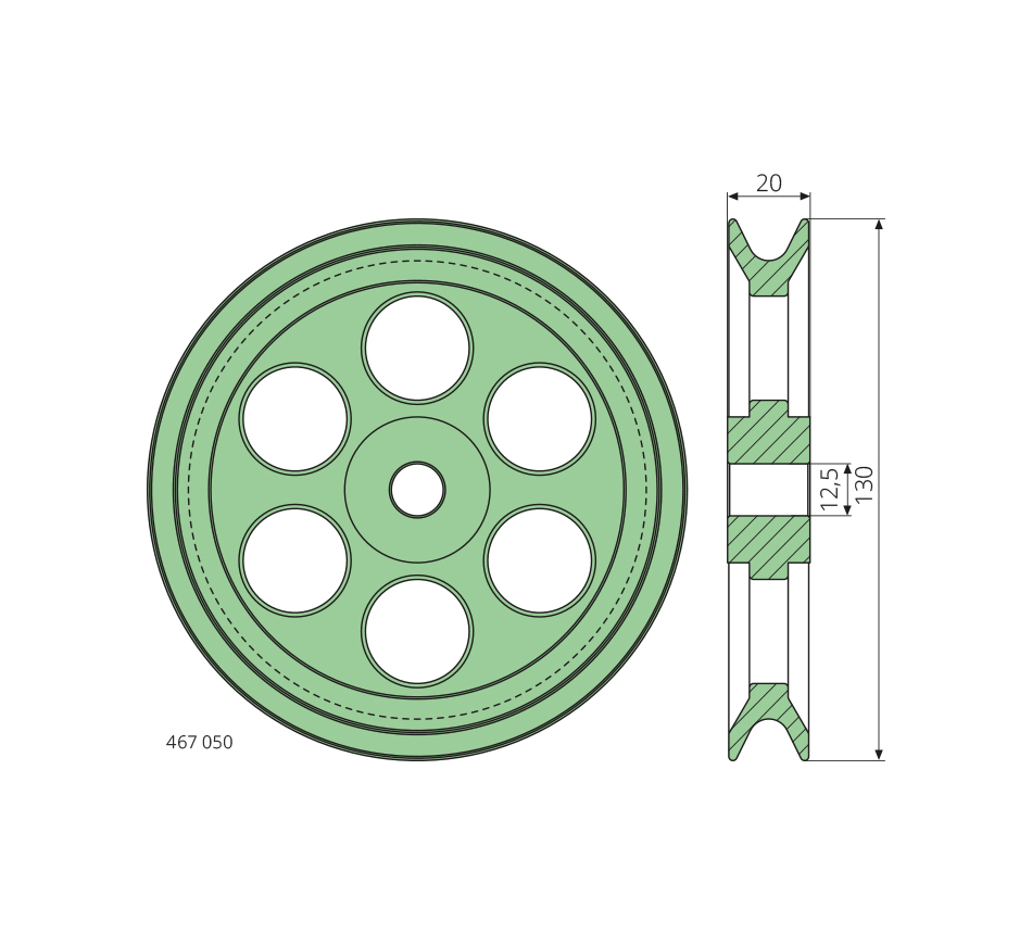 12,5-130-20mm, S355J2, type PAAL, mount for roller 467 046 /-048